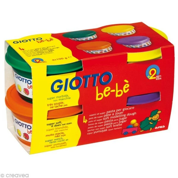 A base d’ingrĂ©dients naturels, la pĂąte Ă modeler GIOTTO BĂ©bĂ© couleurs complĂ©mentaires est idĂ©ale, par sa souplesse, pour dĂ©velopper la dextĂ©ritĂ© de votre enfant. Ce kit GIOTTO Bebe contient 4 pots de pĂąte Ă jouer couleur violet, jaune, orange et vert. DĂšs l’Ăąge de 2 ans, votre enfant pourra pĂ©trir et malaxer sa pĂąte Ă modeler GIOTTO Bebe en toute tranquillitĂ© grĂące aux tests dermatologiques rĂ©alisĂ©s.