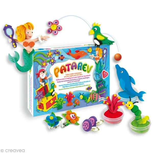 C’est une super activité pour initier les enfants au modelage ou bien les occuper un jour pluvieux, tout simplement. Ils adoreront fabriquer des petits accessoires (ou des balles rebondissantes) pour la fête des mères ou des pères grâce au maxi coffret Patarev ! Créez sans compter ! 8 pots sont à votre disposition pour au choix suivre les modèles ou votre imagination.