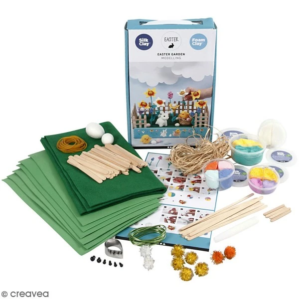 Cette box d’activitĂŠ crĂŠative Foam clay et silk clay Jardin de Pâques fera le plaisir des enfants Ă partir de 3 ans. Grâce au matĂŠriel contenu dans ce Kit d’activitĂŠs DIY enfant, ils pourront apprendre Ă dĂŠcorer divers supports en polystyrène afin de crĂŠer des objets dĂŠcoratifs et des animaux!