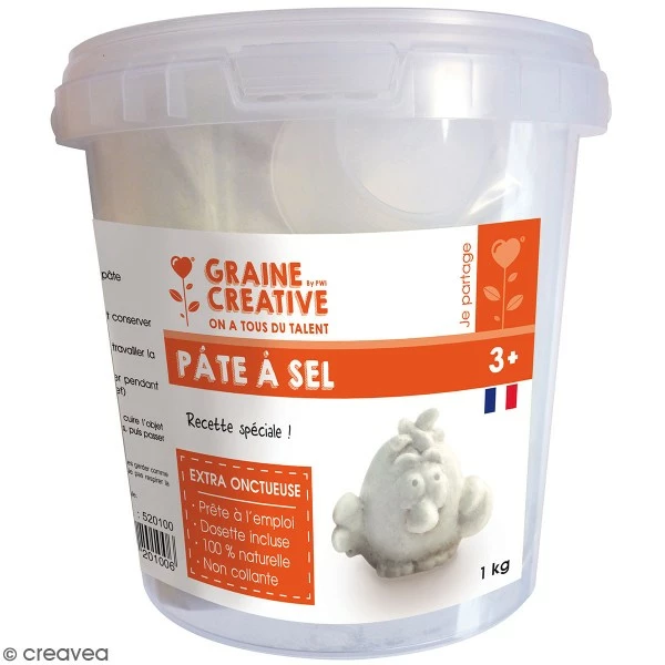 Voici un pot d’un kilo de mélange pour pâte à sel prêt à l’emploi qui fera le bonheur des enfants ! La pâte à sel est une activité manuelle qui est plébiscitée par les enfants.